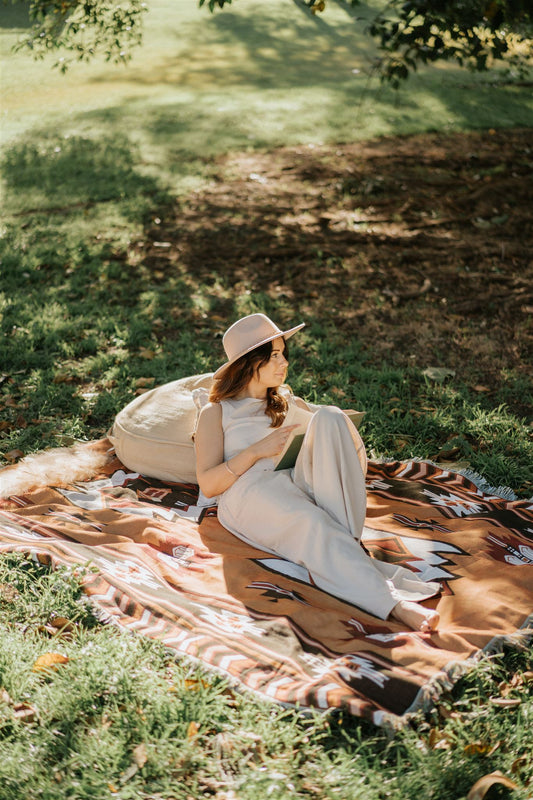 We know adventures and picnics aren't always possible without a little mess. That's why all of our Nomadic Nest throws are machine washable, making every adventure care free! We recommend a cold wash on delicates cycle using gentle detergents. Spot treat stains before washing (test on a small area before using all over). Simply hang to air dry out of direct sunlight.